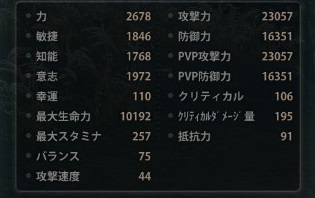 クリ1 抵抗ー2 バラ2 速度2 防御150 攻撃110+35 魔力110+35