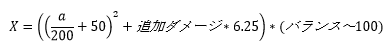 バランスに関しての1次関数、aに関しての2次関数になっていることから、バランスによるXの伸び幅はバランス自体に依存せずaに依存してくる…ということがわかります。